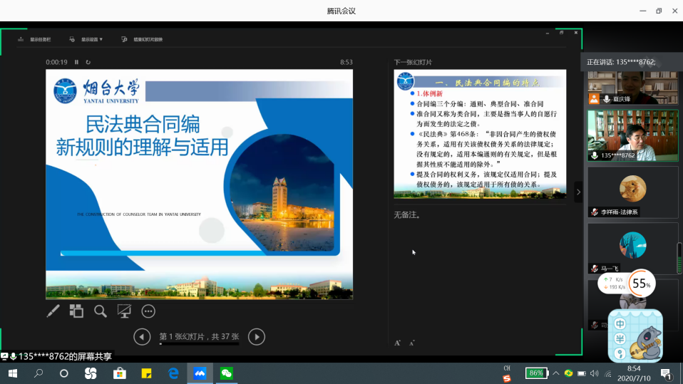 2020年7月10日上午,w66旗舰厅官网法律系“2020年夏季学期系列大讲堂之法学讲座”之“民法典合同编新规则的理解与适用”通过网络会议的形式于线上成功举办。