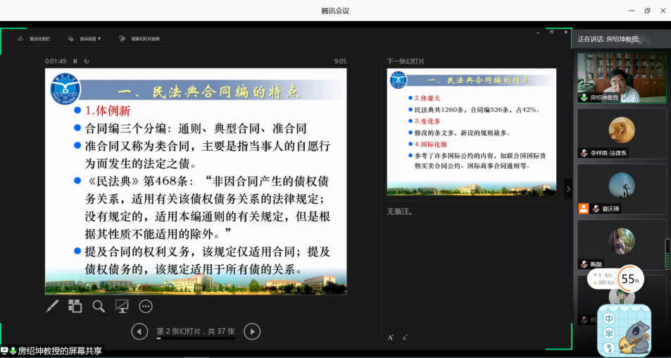 房绍坤教授的讲座围绕“民法典合同编的特点”,“合同订立的新规”以及“合同效力的新规”等与民法典合同编相关的八个方面展开讲解,全方位展现了合同编的新变化,以及独具特色的认识和见解。