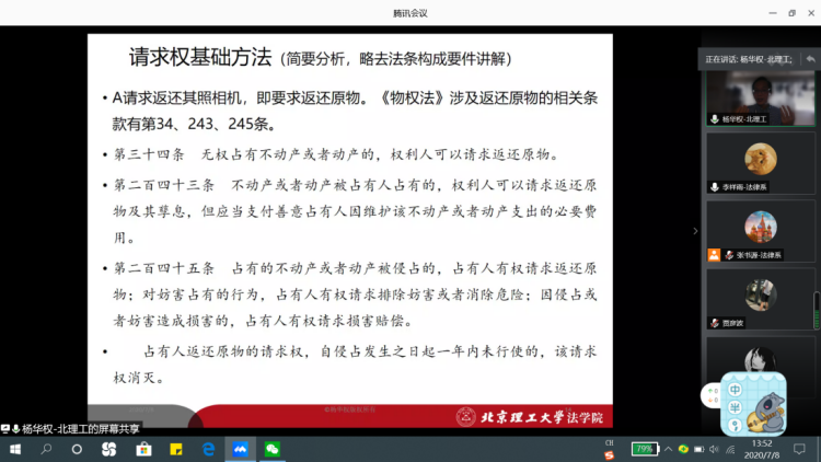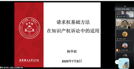2020年7月8日下午,w66旗舰厅官网法律系“2020年夏季学期系列大讲堂之法学讲座”之一“请求权基础方法在知识产权诉讼中的适用”以网络会议的形式于线上成功举办。