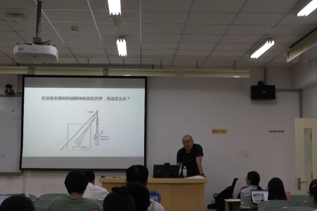 讲座伊始,左亦鲁老师首先通过比较“constitution”和“constitution law”指出,除了关注宪法文本,我们还应当思考那些可以称之为“宪制”的事物,即共同体为生存、安全和发展所确立的根本目标、规则和制度。继而,左老师启发同学们思考,文学之于法律有怎样的意义?为什么要通过文学作品思考法律问题?通过解释“文学中的法律(law in literature)”和“作为文学的法律(law as literature)”的意涵,左老师向大家介绍了法律与文学这种交叉研究进路的基本框架,左老师认为,文学往往比法律著作更为深刻、高明,更能揭示人作为个体和族群存在的根本问题;同时,文学文本的引入,也让法律人能够在传统的法律材料之外获得一种全新的研究材料与视角。