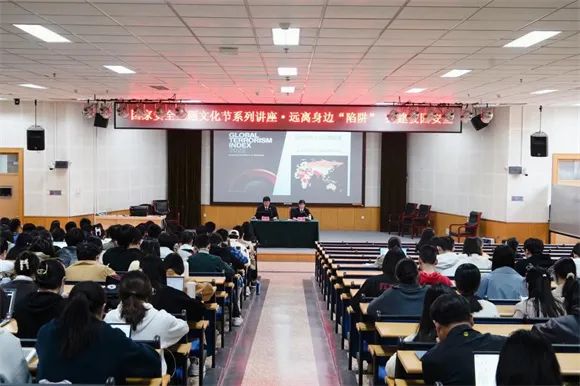 张红检察官带领同学们回顾了我国近三十年来的重大恐怖主义活动案件,介绍了当前国内外恐怖主义犯罪现状、刑事处理范围以及我国目前对恐怖主义、极端主义的相关法律规定。通过播放宣传片、讲解司法实践案例,介绍检察机关对罪名认定及案件办理等过程,深入阐释恐怖主义的传播机理、犯罪原因、预防及防范手段,系统分析恐怖主义犯罪的惩治措施。