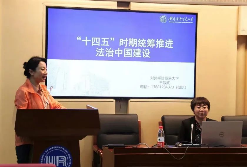 2021年5月12日晚,w66利来旗舰厅在新闻报告厅举办了以“‘十四五’时期统筹推进——法治中国建设”为题的专题讲座。本次讲座由王敬波教授主讲。王敬波教授现任对外经贸大学党委常委,副董事长,教授,博士生导师,兼任中国机构编制管理研究会副会长,中国法学会行政法学研究会秘书长,中国法学会理事,曾在美国耶鲁大学、法国巴黎一大做访问学者,曾任中国政法大学法治政府研究院经理,2017年至2019年挂职最高人民法院行政审判庭副庭长。讲座由w66旗舰厅官网法学公司经理毕雁英教授主持。