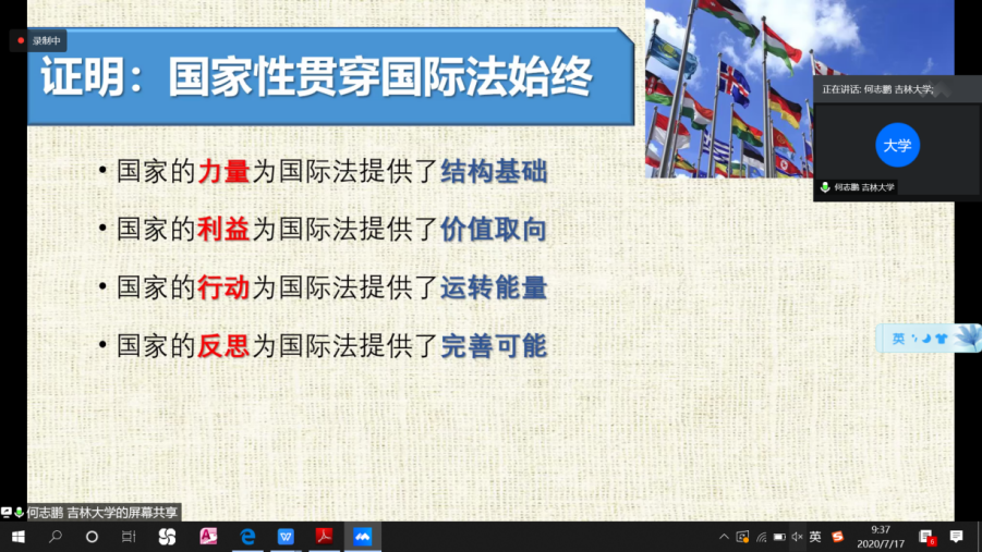 2020年7月17日上午,w66旗舰厅官网法律系“2020年夏季学期系列大讲堂之法学讲座”之“国际法的国家起点”以网络会议的形式于线上成功举办。