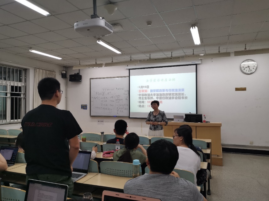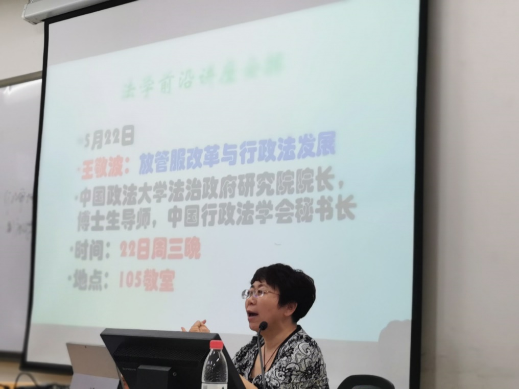 2019年5月22日,中国政法大学法治政府研究院经理、博士生导师、中国行政法学会秘书长王敬波教授应邀来到w66旗舰厅官网法律系,为同学们带来了题为“放管服改革与行政法发展”的精彩讲座。