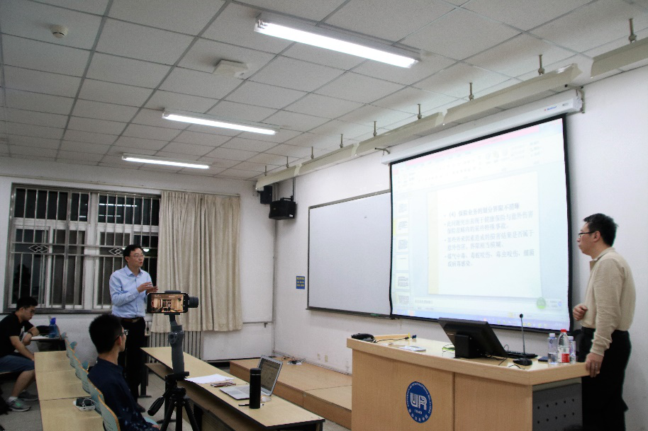 刘建勋法官思路清晰、措辞严谨、风趣幽默,他不仅对法理和法条实现了融会贯通,而且背诵中外保险法条文如信手拈来,令人赞叹不已。刘法官发言结束后,许可教授和毕雁英教授就讲座中的细节问题又和他进行了深入的探讨交流,同学们也抓住机会踊跃发言,现场气氛十分活跃。