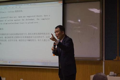 讲座伊始,王军教授着重向大家介绍怎样通过阅读案例学好法律英语,他提出在全世界的诸多法律领域,英美法占有强势地位,因此学好法律英语是至关重要的。法律英语的学习需要大量的阅读,数量的积累是必不可少的,建议大家作为入门学习在不同的法律领域挑选阅读20个左右的纯英文案例。随后,王军教授向大家介绍了阅读英文案件的方法,他指出:首先需要选择好的案件,比如《国际商法教学案例(英文)选编》、《美国合同法案例评选》等中的案件;其次需把握好核心的概念,了解英美法官大致分为七步的推理过程;再次需要了解英美法遵循先例的制度;最后需要掌握英美法案例中的技术性术语。