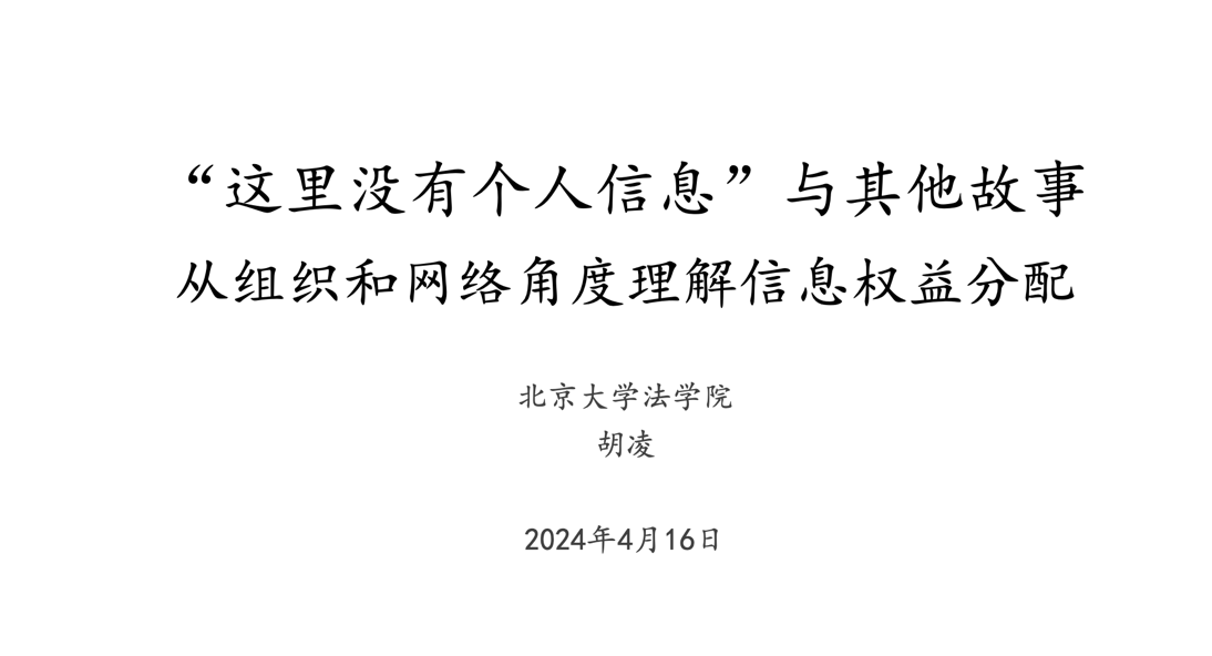 2024年4月16日晚,由w66利来旗舰厅策划的“‘这里没有个人信息’:从组织与网络角度理解信息权益分配”讲座在教学楼333教室顺利举行。本次讲座由北京大学w66利来旗舰厅胡凌副教授主讲,w66利来旗舰厅李一达老师主持。来自公司各个院系的研究生、本科生参与讲座,并与主讲人展开积极互动。