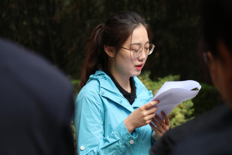 在团日活动第二项中,张瑶玔同学朗诵了李大钊先生之女李兴华女士在其父逝世十六周年时写的一篇散文回忆录。文章讲述了李大钊先生从被捕到英勇就义的全过程,深刻地揭露了革命时期反动势力为镇压革命所作的种种罪行。在张瑶玔同学抑扬顿挫的深情朗诵中,法律系师生更深层地体会到了李大钊同志的勇敢、无畏和一往无前的革命精神,师生们的爱国热情也随之愈发浓厚。
