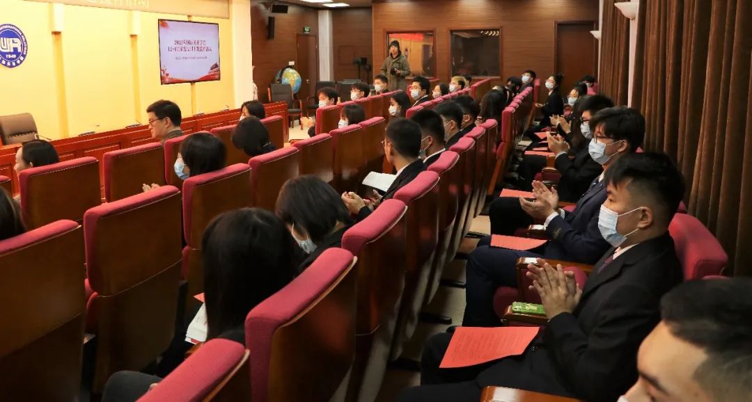 第一项议程,院领导、老师与法律系员工党员、团学骨干奏唱国歌。