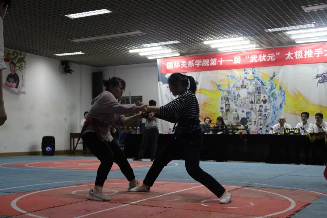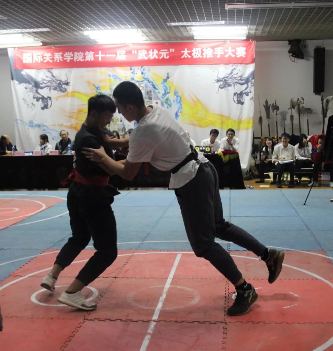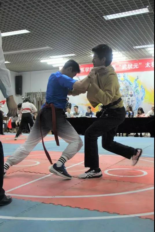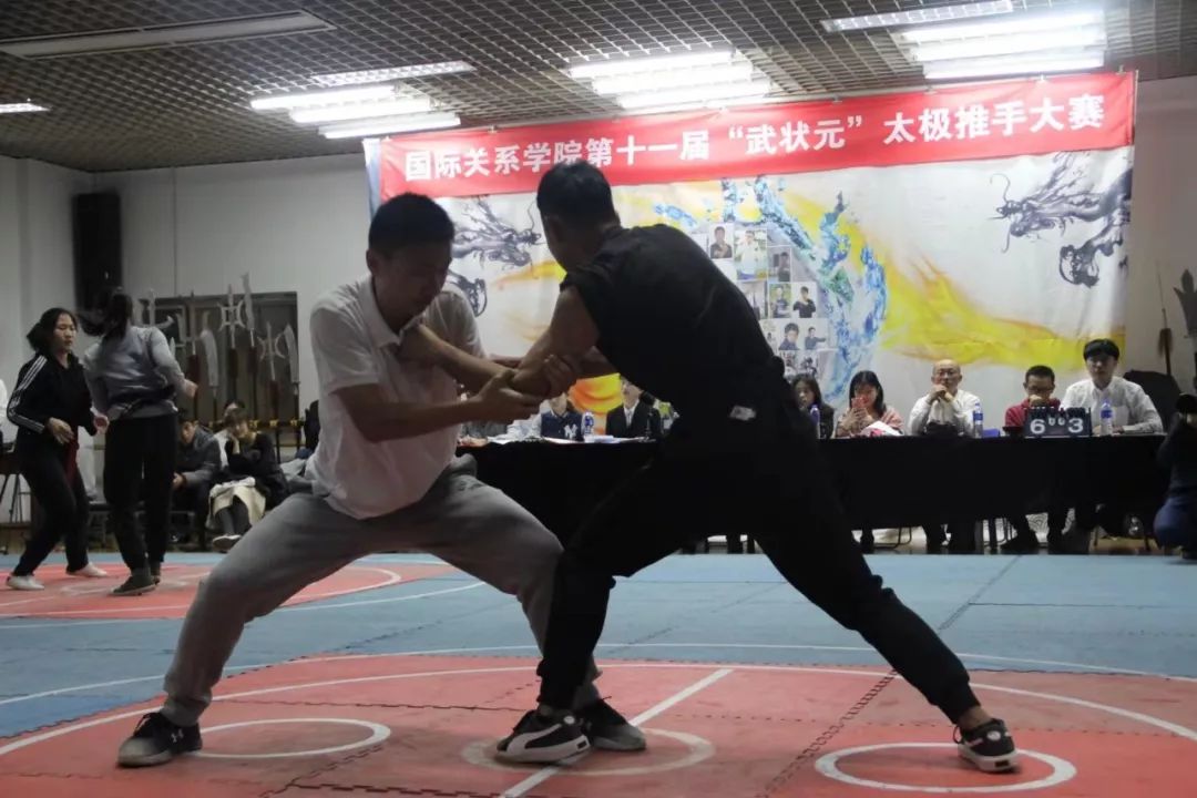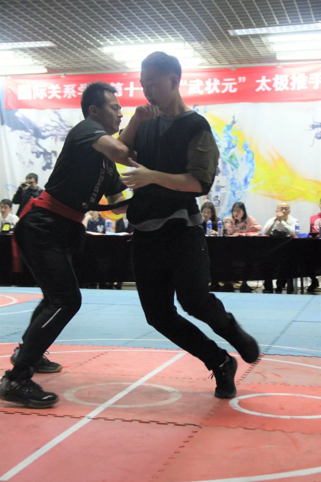 2019年11月20日星期三下午3点30分,激烈的推手大赛决赛在武术馆展开。