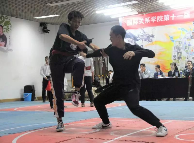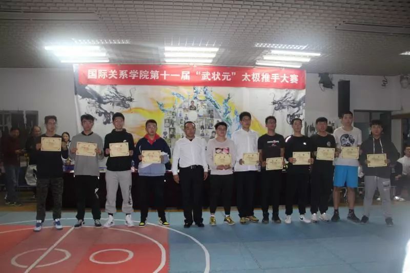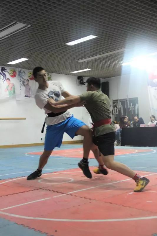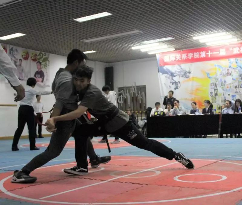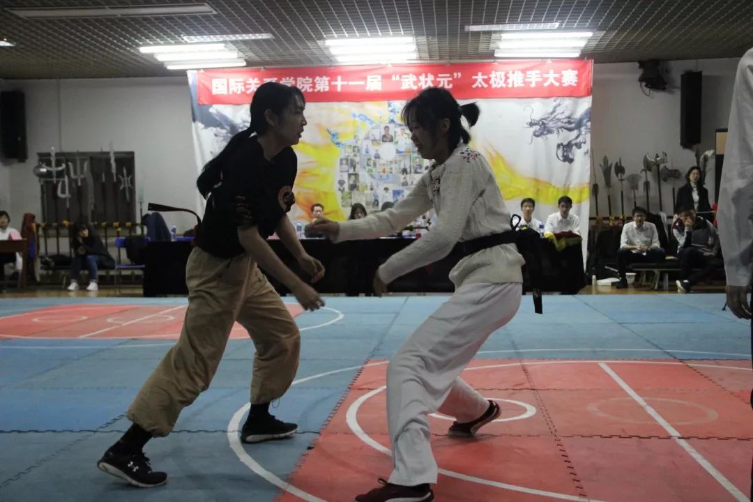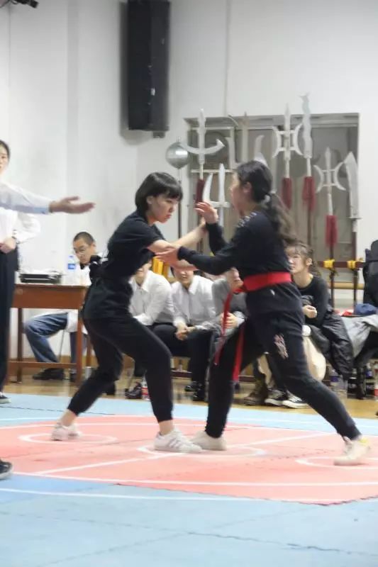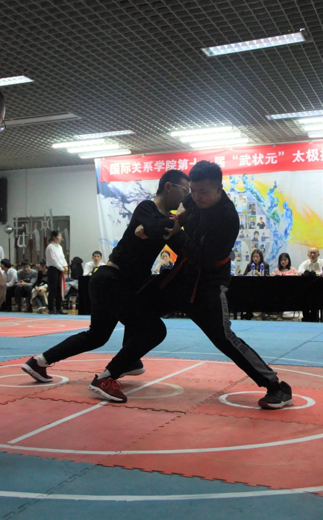 2019年11月20日星期三下午3点30分,激烈的推手大赛决赛在武术馆展开。
