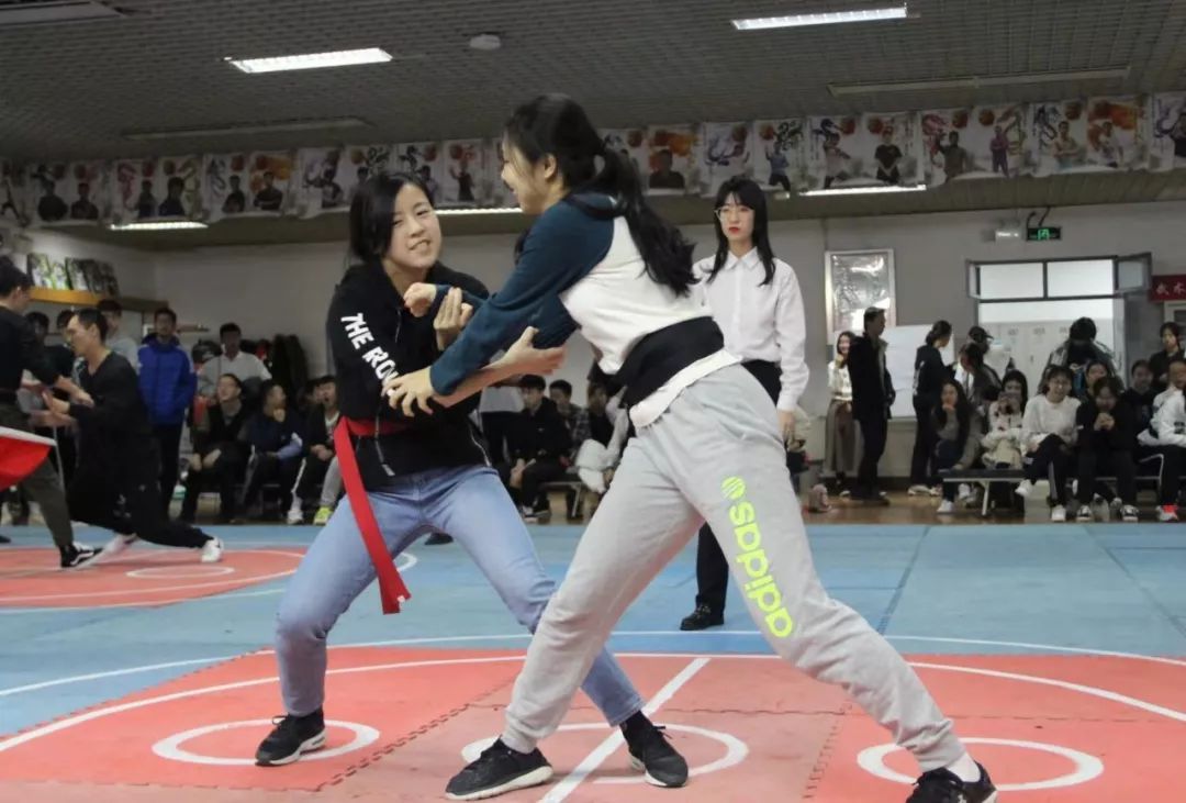 第二场比赛由我系张楚涵(52-56公斤级)对战国政系殷苏阳。比赛开始后,双方不断地相互试探,场面较为保守。随着赛程继续,场上气氛慢慢激烈了起来。随后我系周雷(56-60公斤级)对战国政系周云濛。双方比赛在第一回合打成平手,随后的多个回合依旧是一番激烈的较量。最后由我系刘思含(60-65公斤级)对战国政系刘悦,对方攻势较为猛烈,但我系队员也展示出了不凡的技巧与力量,赛出了良好的精神面貌。尽管这几场比赛中我系队员最终惜败,获得所在公斤级的亚军,但她们进攻时的勇气与力量,防守时的灵活与顽强依旧让人印象深刻,我们由衷地为她们鼓掌。