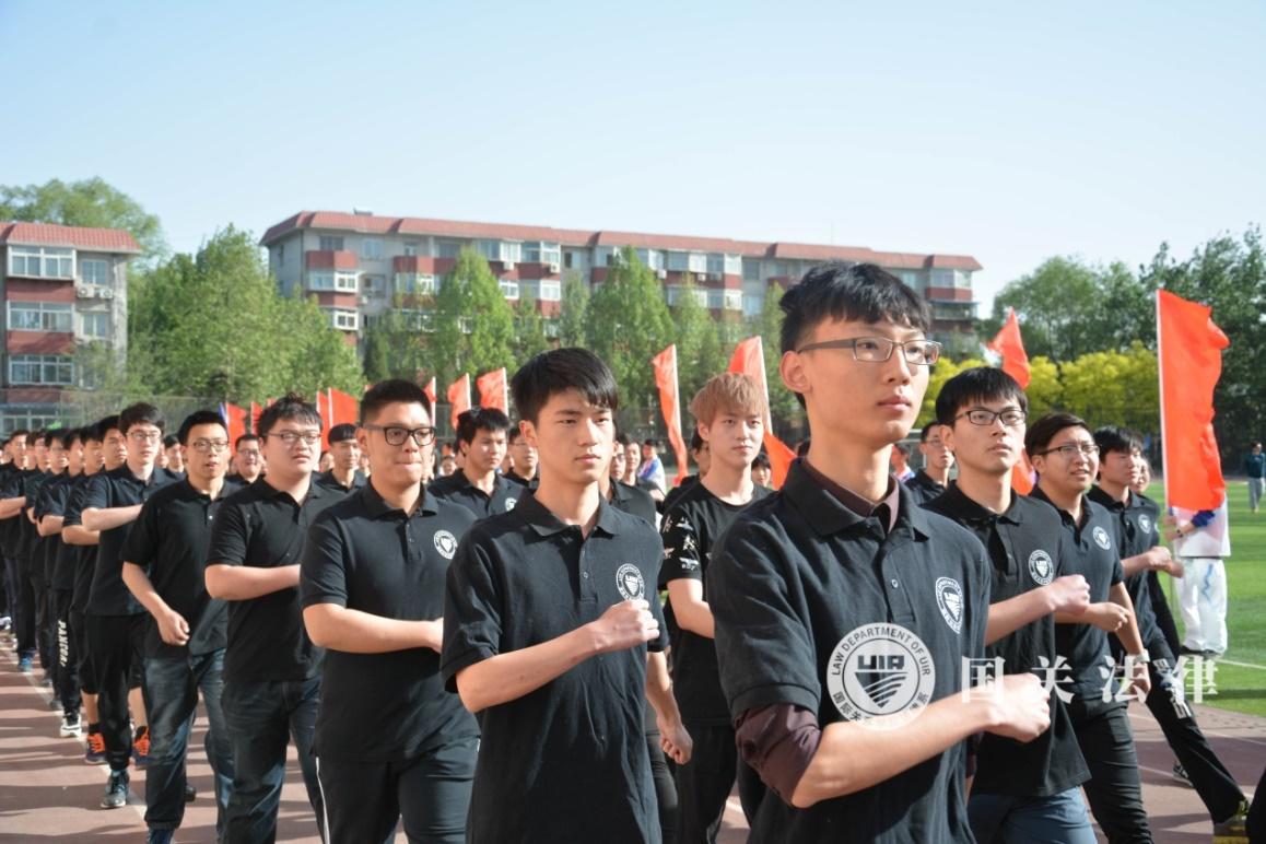 法律系保持了一直以来沉稳简约的风格,方队由14、15级共80名同学组成,大家身着黑色系服,步伐整齐,口号响亮,气势不凡,取得了主席台领导老师与看台观众的热烈反响。
