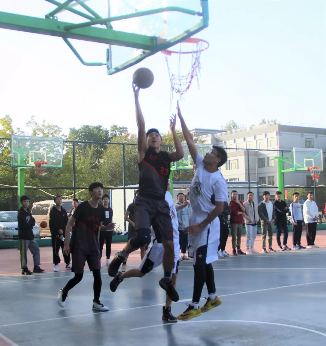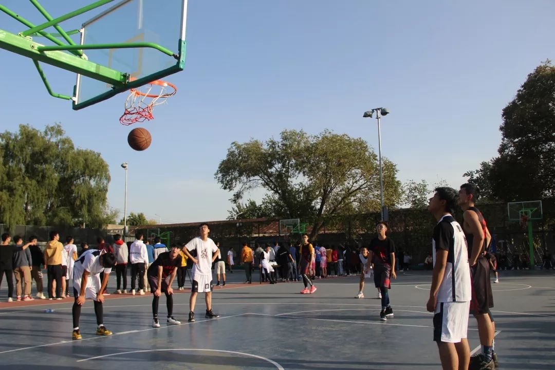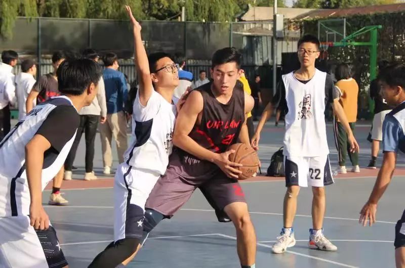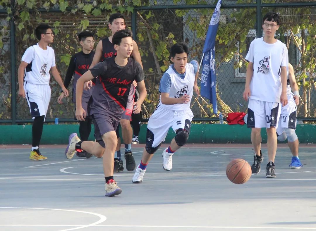 法律系与国政系的新生篮球赛在篮球场拉开战幕。