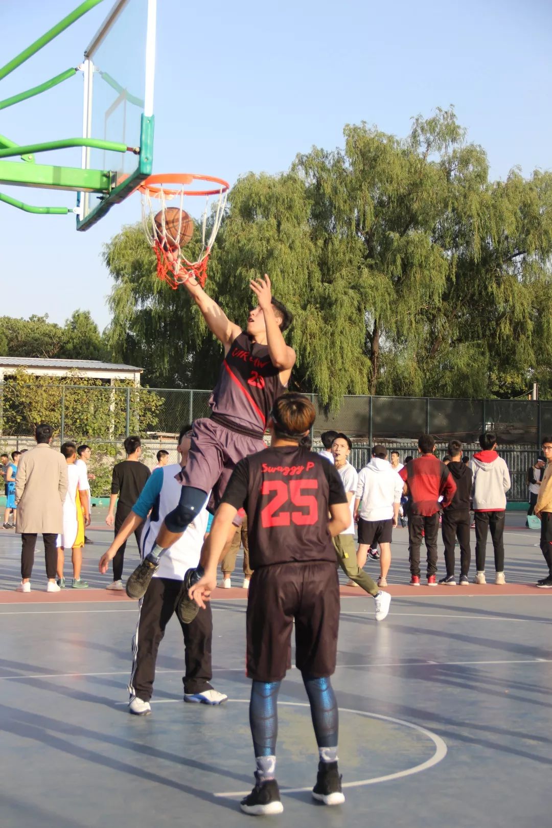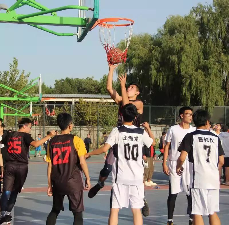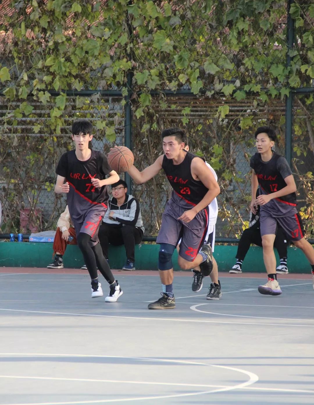 法律系与国政系的新生篮球赛在篮球场拉开战幕。