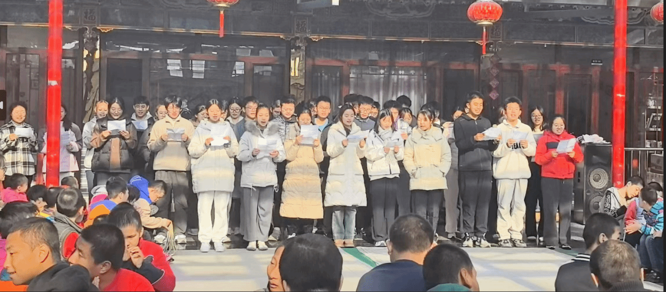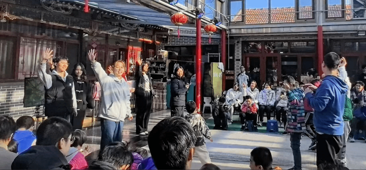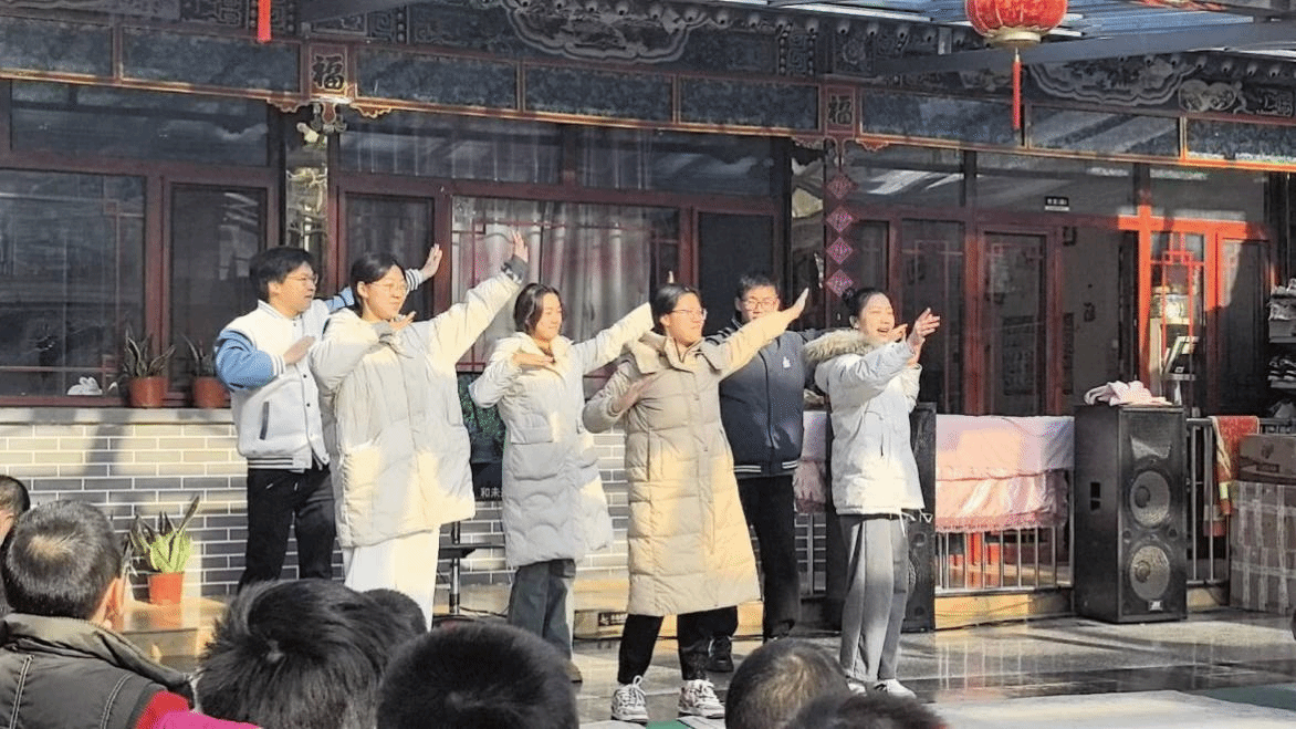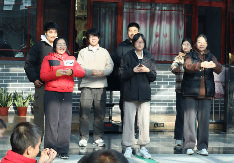 接着,六位志愿者和五位小朋友面对面共同表演了手势舞《把未来点亮》,七位志愿者带来了手势舞《中华孝道》。在表演《中华孝道》前,一位特教老师特别强调了“孝”字。她告诉志愿者们每年春节都有许多小朋友无法回家只能留在康复中心过年,但小朋友们仍然很开心。因为在康复中心,经理和老师们会为小朋友们购置水果零食,小朋友们还可以在一起愉快地玩耍,一切就和在家过年一样。同时,老师也说道,一个特殊儿童对于一个家庭来说的确是沉重的负担,因此,他们需要更多的关注。最后是志愿者们的大合唱《和你一样》,歌声如同桥梁连接着志愿者和小朋友们的心,让他们感受到自己并不孤单。
