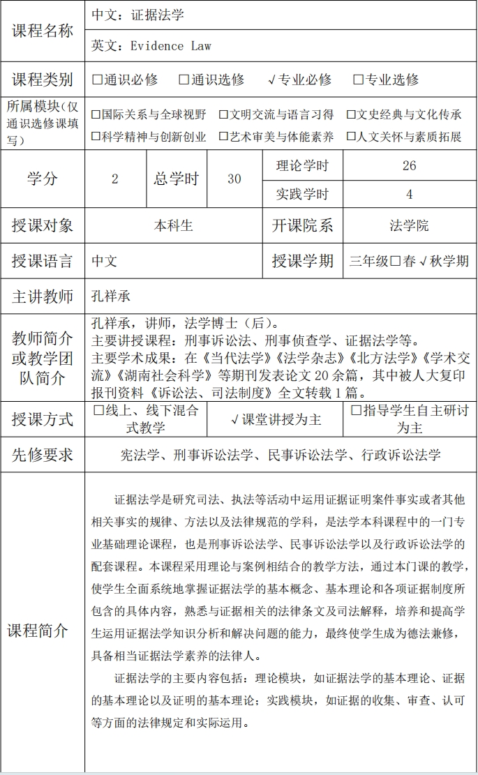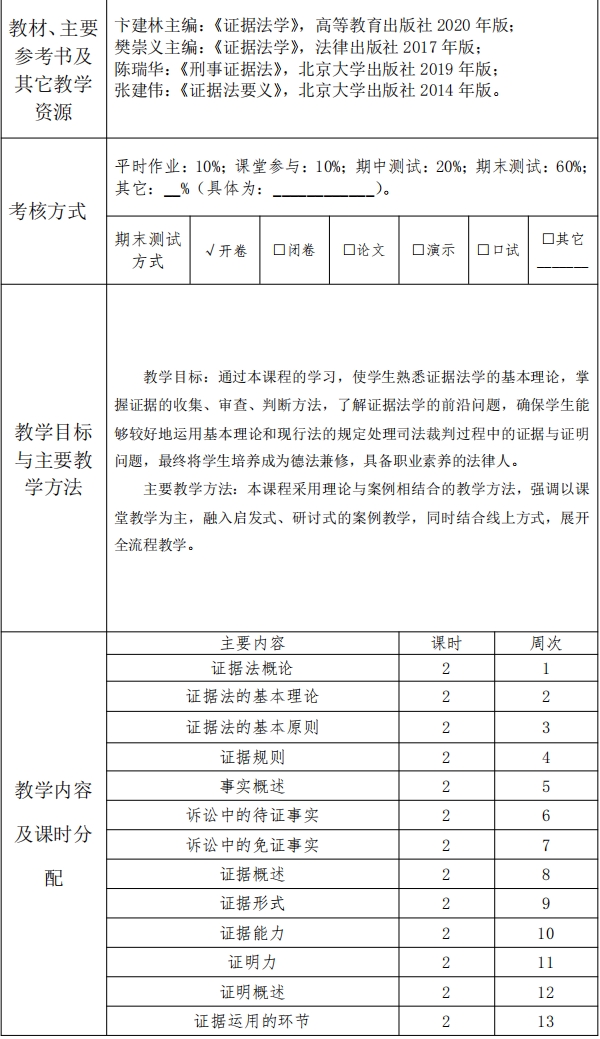 先修要求:宪法学、刑事诉讼法学、民事诉讼法学、行政诉讼法学