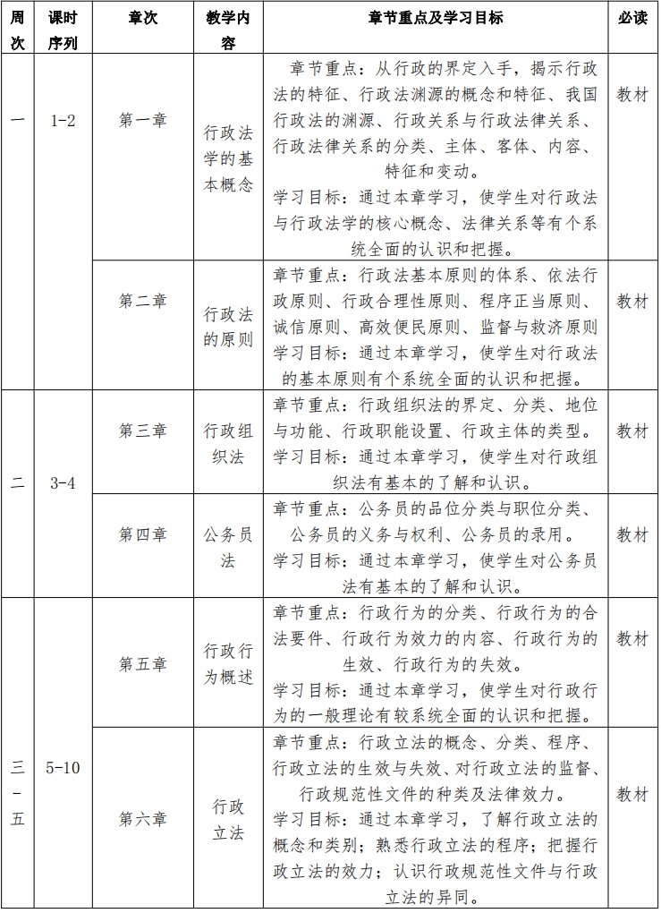 《行政法学》教学大纲