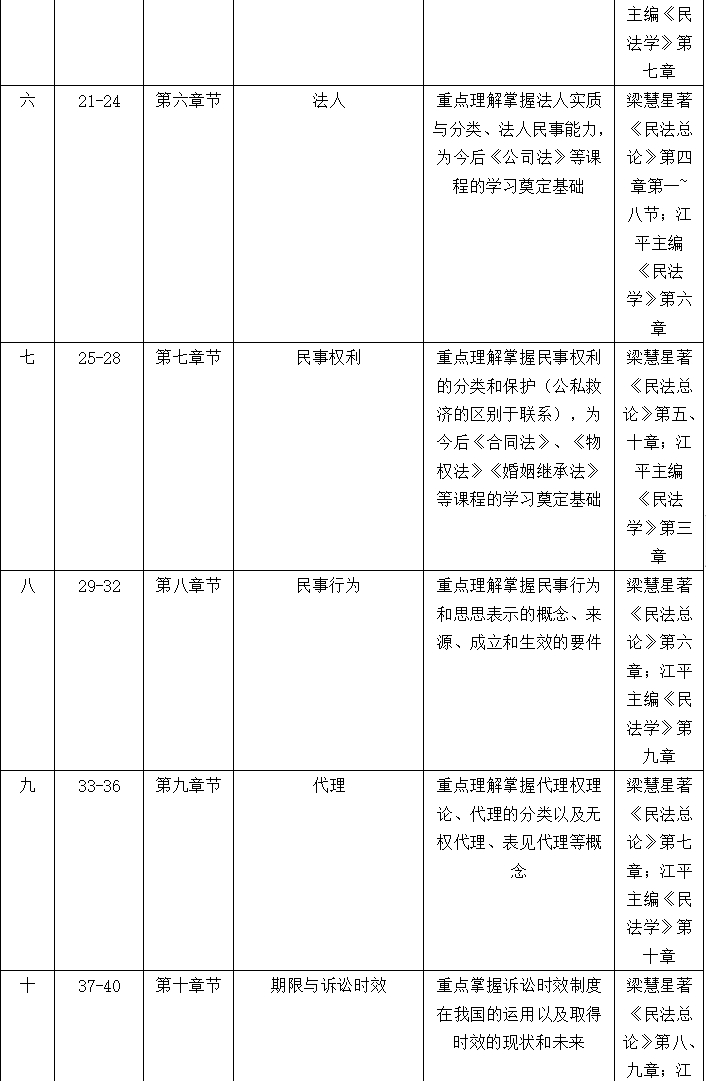 民法学有其完整的理论,有特定的法律规范,还有大量具有典型意义的判例。要求学习本课程的员工不仅积极参与课堂互动交流,课外更要做好预复习工作,完成参考资料的自学,关心本学科的最新发展,尤其紧密跟踪我国《民法典》立法动态,了解民法的制度框架,对民法形成系统、全面的认识,培养良好的法律逻辑思维能力。