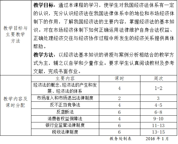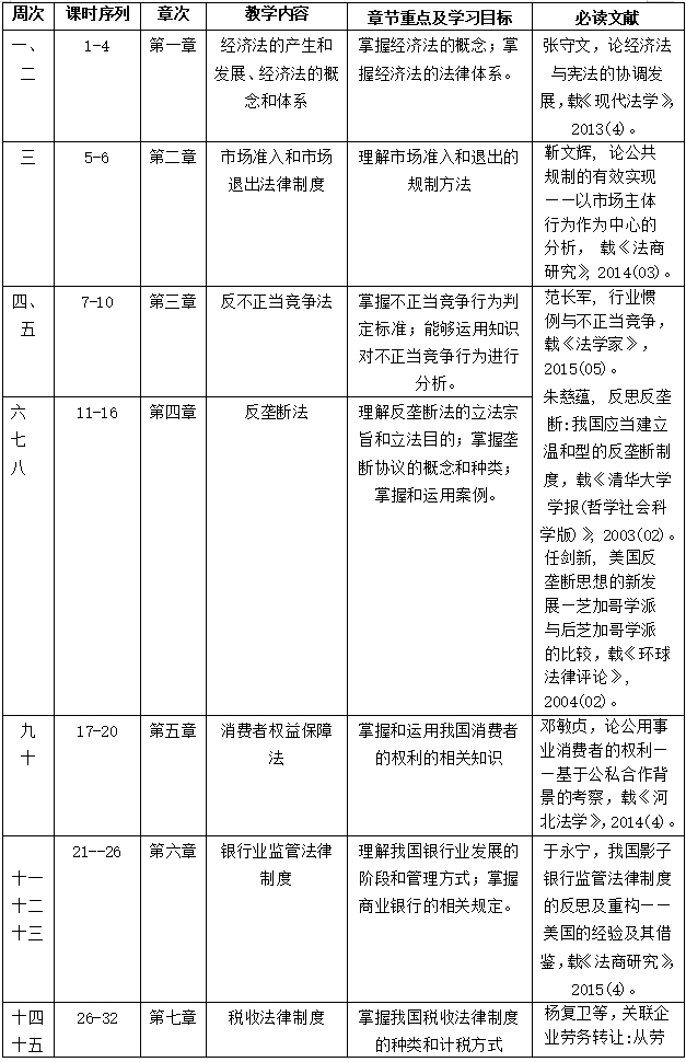 《经济法学》教学大纲