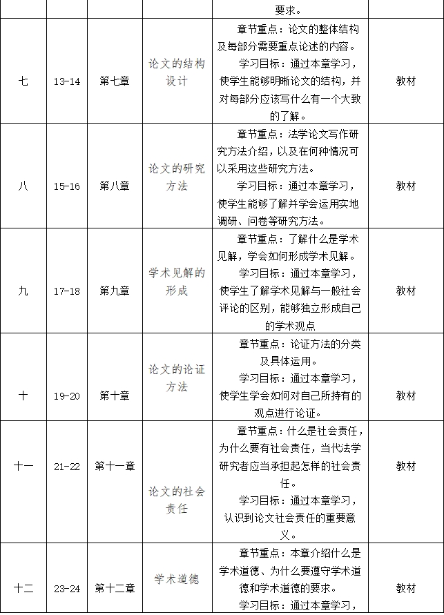 本课程的基本要求是让员工熟练掌握法学论文写作的方法,学会论文的选题方法、论文资料收集和整理方法、论文写作的研究方法等,逐步学会如何形成学术见解,完成符合学术规范的毕业论文。