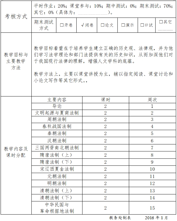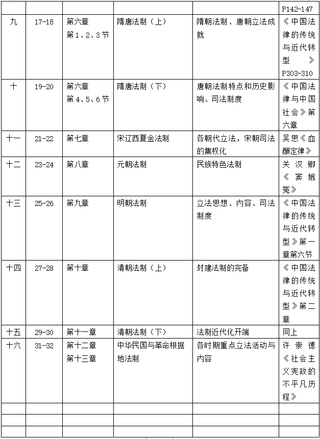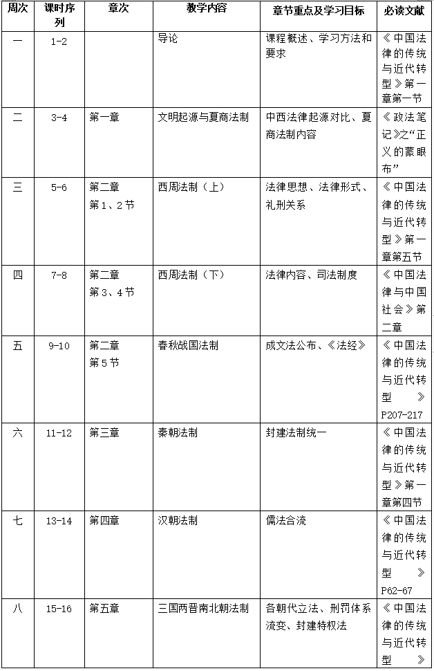 中国法制史教学大纲