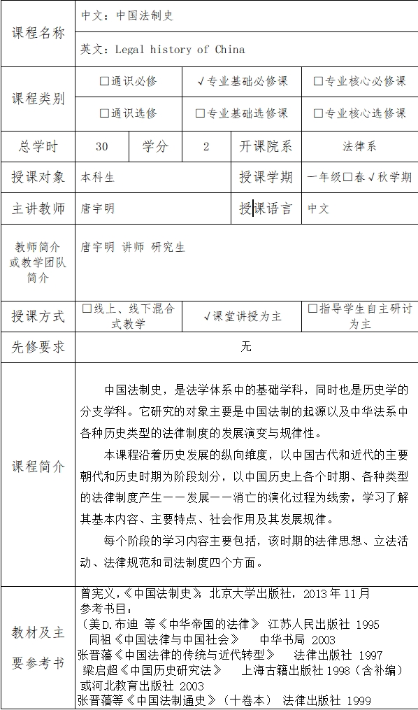 课程英文名称:Chinese Legal History