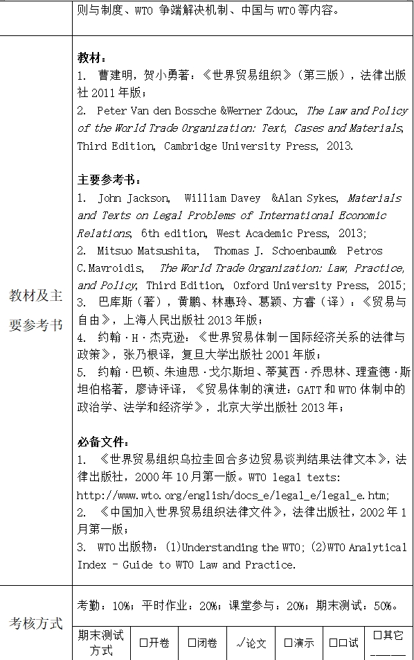 学前准备:阅读相关文献、WTO专家组报告和上诉机构报告相关内容,尝试开展分析与评论;做到预习、课堂互动、复习环节有机一体,提高学习效果。