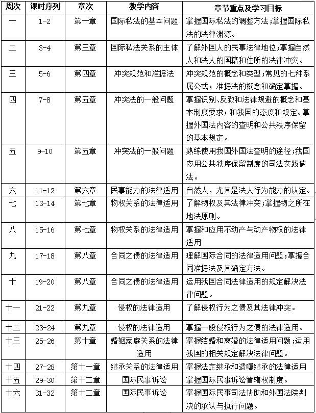 《国际私法》教学大纲