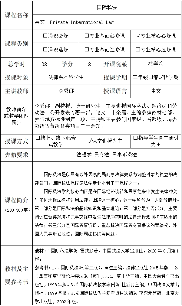 课程英文名称:Private International Law