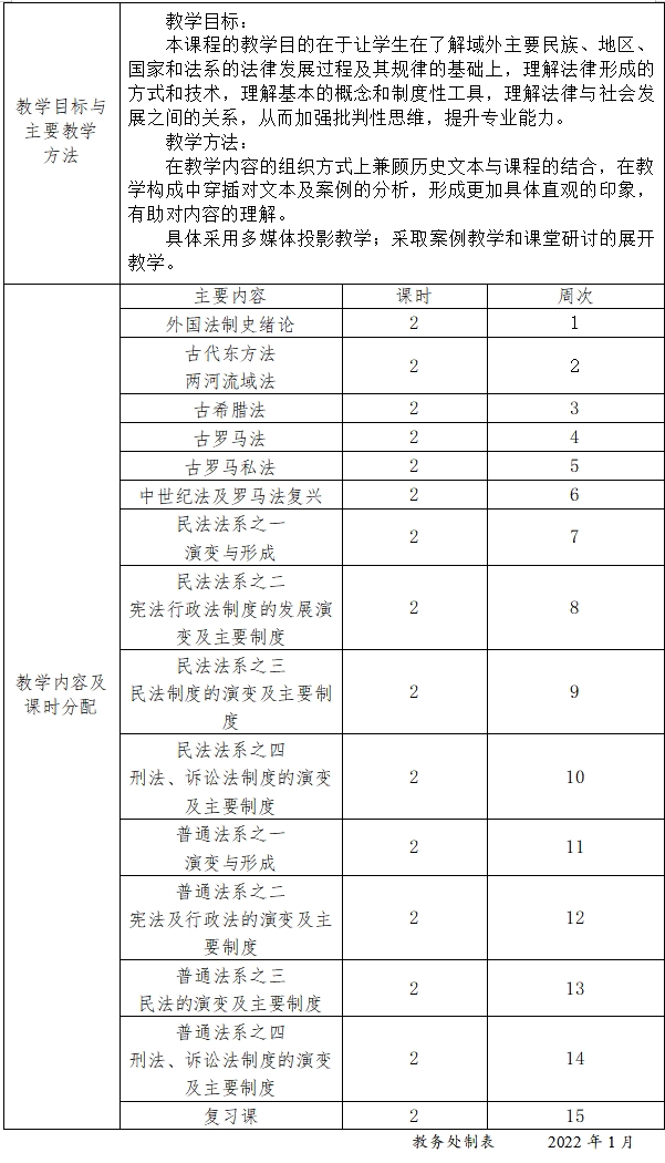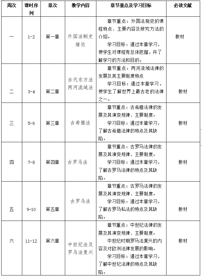 《外国法制史》教学大纲
