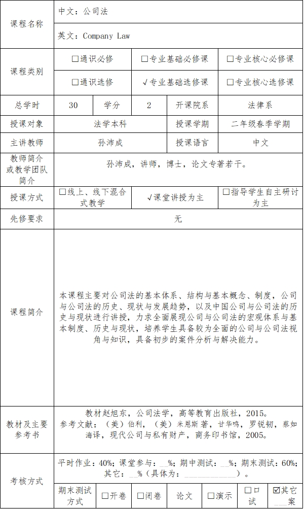 《公司法》教学大纲