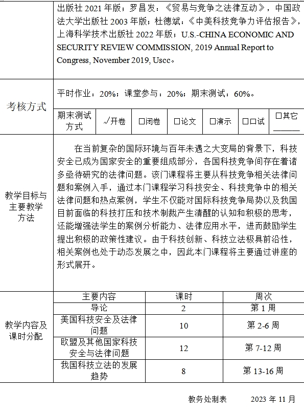《科技安全法律专题讲座》教学大纲