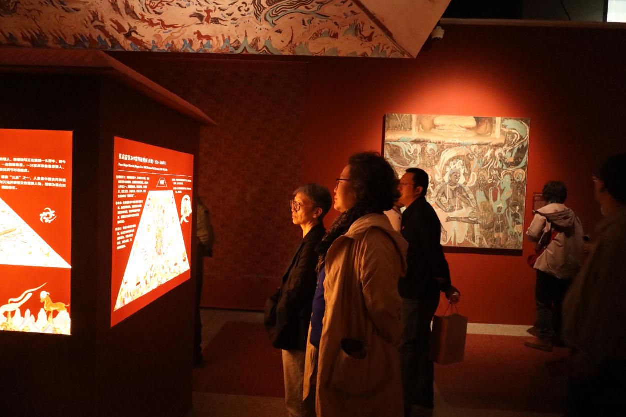 敦煌文化承载了千年丝路风华,在全球文化交流中彰显着华夏底蕴。“如是莫高——敦煌艺术大展”暨“莫高精神——红色主题展”由敦煌研究院、北京展览馆集团有限公司联合主办。展览实现了敦煌莫高窟九座经典洞窟的“重生”,呈现了近300幅(件)临摹壁画、雕塑及文物真迹,且通过“复刻经典洞窟+文物+壁画彩塑+文化体验”的架构,“敦煌印象”“千年莫高”“灿烂佛宫”“庄严净土”“万象人间”和“石室宝藏”的展区分布,使得敦煌艺术的千年积淀与丝路文明的开放包容得到了全景展示。