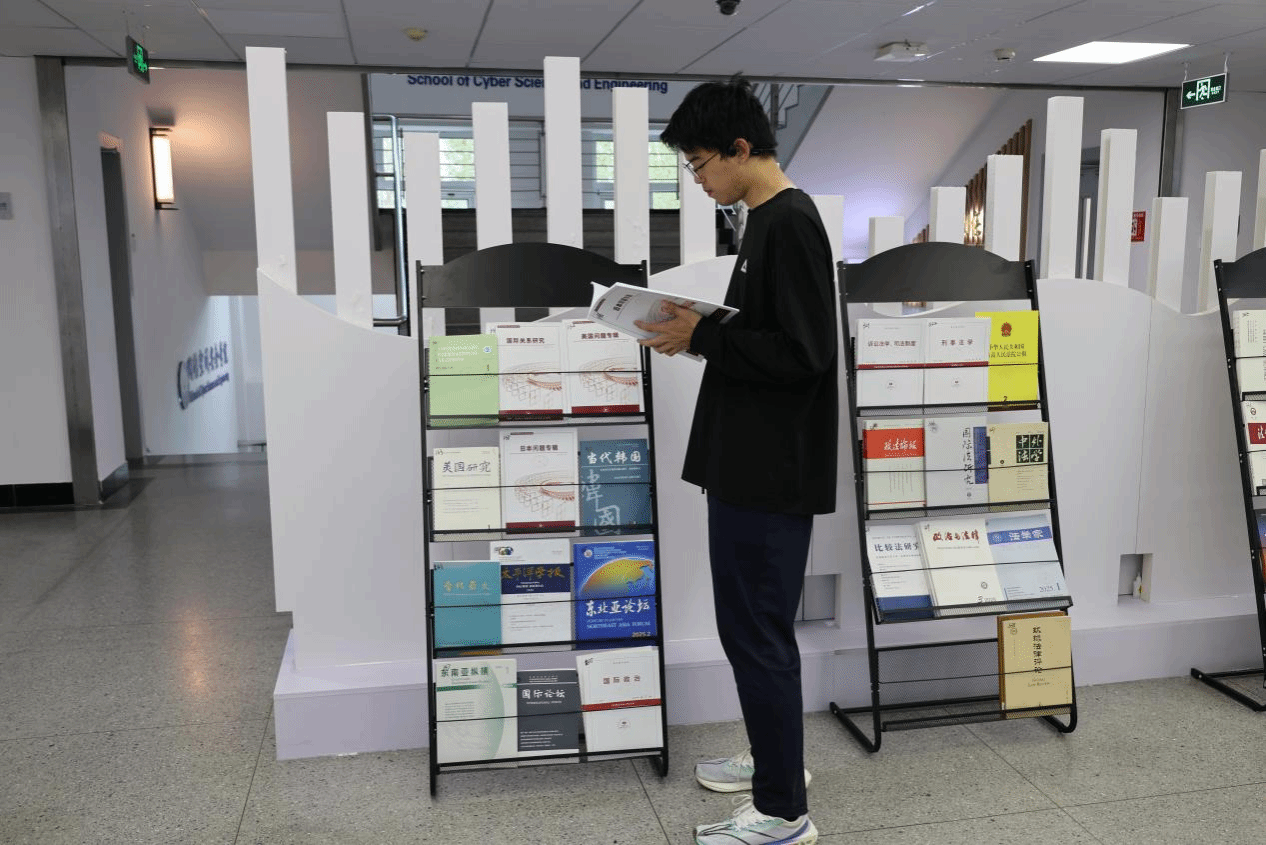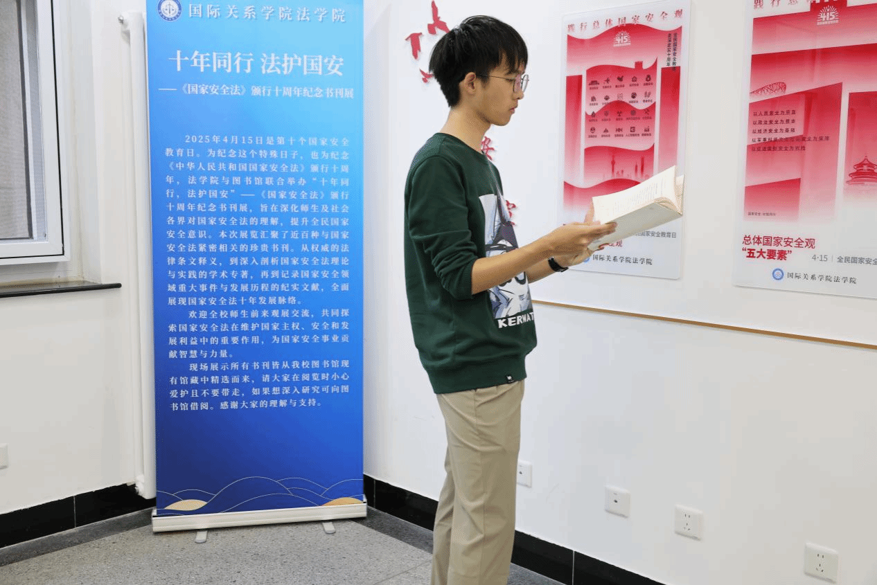 “书犹药也,善读之可以医愚。”由w66利来旗舰厅特意打造的“四楼阅读角”为全校师生提供一处静心探索知识的“精神港湾”。为营造温馨舒适的校园阅读氛围,助力师生交流与学习, 本次展览精选多种书籍,汇聚了近百种与国家安全法紧密相关的高质量书刊。从权威的法律条文释义,到深入剖析国家安全法理论与实践的学术专著,再到记录国家安全领域重大事件与发展历程的纪实文献,全面展现国家安全法十年发展脉络。