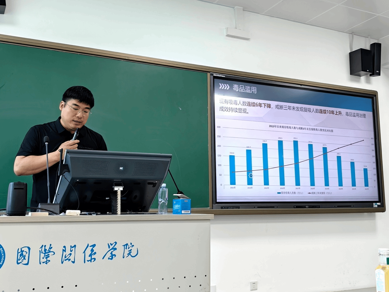 最后,王老师对今天的讲座进行了总结。首先,我国禁毒工作要实现粗放型向精细型的转变。其次,随着毒品来源途径多、毒品贩运形式广、藏毒方式花样多,我国禁毒工作充满挑战,也饱含机遇。最后,我国的禁毒工作应立足现实毒情,不断更新理念、调整策略。