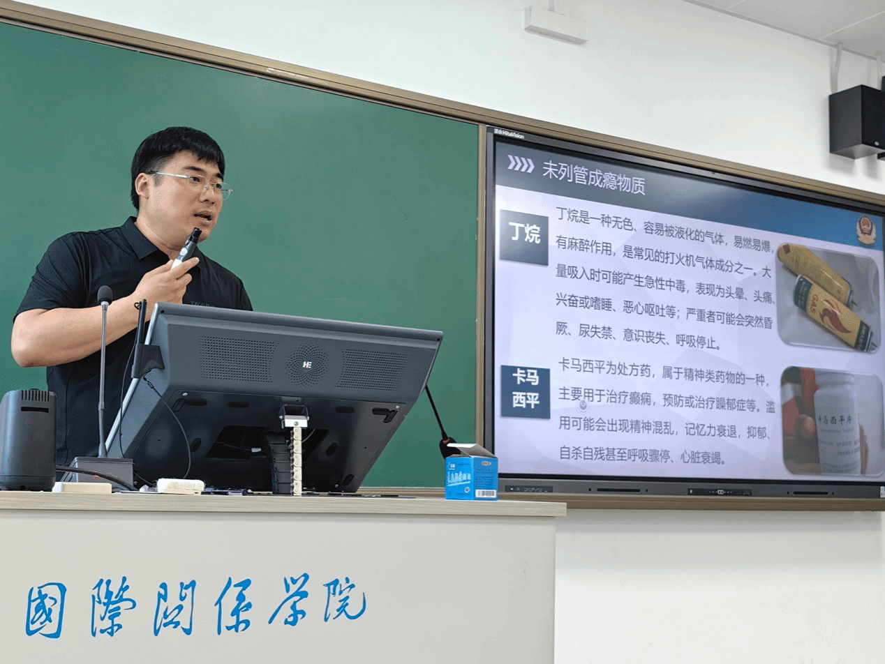 第一部分,王老师着重介绍了我国当前的毒情形势。首先,近年来传统毒品滥用的人数持续减少,芬太尼类物质至今未发现成规模滥用现象。但这并不代表我国毒品问题已经解决。随着众多新情况的出现,我国禁毒形势出现反复。其次,我国毒品滥用品种多样叠加、成瘾性物质替代滥用问题突出。部分吸毒人员为缓解毒瘾,转而寻求其他价格较低且效果相近的麻精药品、新精神活性物质及未列管物质进行代替滥用。最后,滥用替代物质的危害显著。在滥用毒品替代物质后,吸毒人员易精神异常、出现幻觉或者狂躁症状,存在肇事肇祸风险。