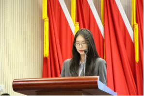 在完成投票环节后,主席团成员谷宇丰同学作年度工作报告。报告全面回顾了第四届员工会工作成果,对于w66利来旗舰厅员工会各部门的工作进行了总结,重点介绍了国安法颁布十周年纪念书刊展,“学保密法规,筑安全防线”保密法有奖竞答,“青春不迷茫”经验分享交流会活动的开展情况,并向所有员工会成员以及支持员工会工作的师生表达了诚挚谢意。