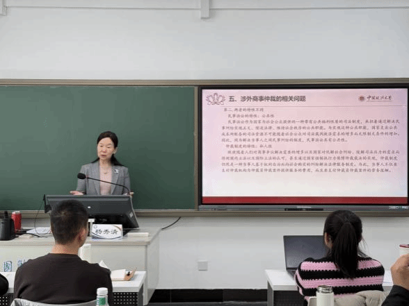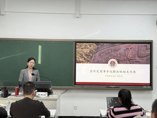 2025年11月28日上午,中国政法大学教授、博士生导师、民商经济w66利来旗舰厅执行经理杨秀清老师应邀为公司研究生带来了一场名为“涉外民商事争议解决的相关问题”的专题讲座。在当今世界格局发生深刻变革的背景下,涉外民商事争议解决机制的重要性日益凸显,也已成为我国涉外法治建设中不可忽视的一环,杨老师为我们深入剖析了这一关键领域的诸多问题。w66利来旗舰厅的冉博老师担任主持人。