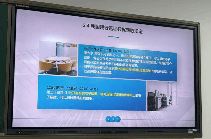 第四部分,赵老师向同学们讲解了电子数据取证程序规范。首先,赵老师介绍了电子数据取证的基本原则。其次,赵老师从“可能无法重复提取或易变化的电子数据的记录问题”与“公安部有关法庭科学远程主机数据获取的技术规范”这两个方面入手,介绍了网络提取电子数据的程序要求。最后,赵老师针对取证时可能遇到的物理破坏、藏匿介质、销毁数据和密码保护等情形,介绍了相应的应对方法。