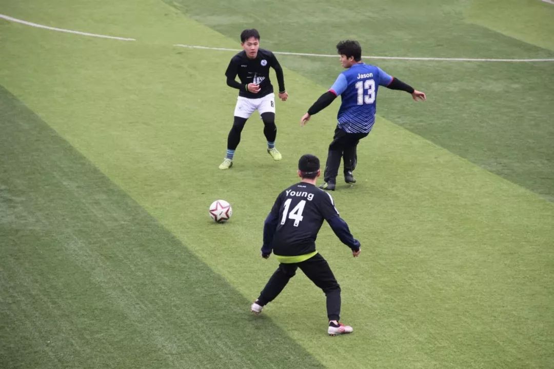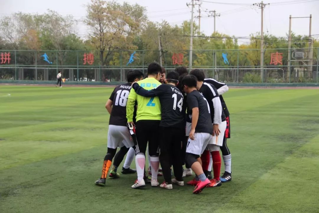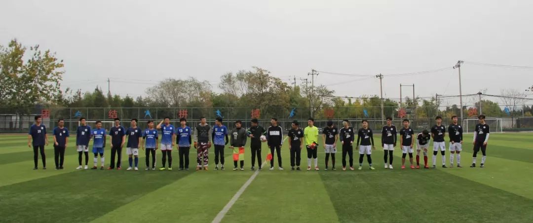 “秋风萧瑟天气凉,草木摇落露为霜”,比赛尚未开始,刺骨的寒风就先挑战着足球运动员们的身体与意志,加之对方门将迟到,比赛不得不推迟至13:17才正式开始。阵阵寒风刮过,队员们始终保持着最佳状态。