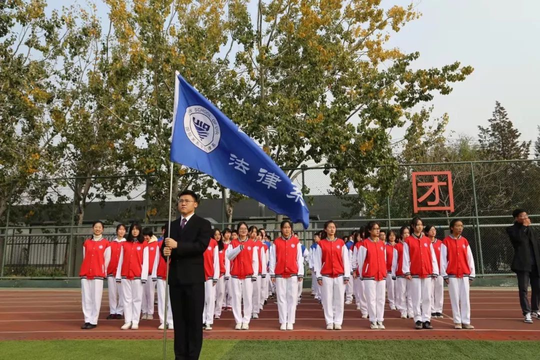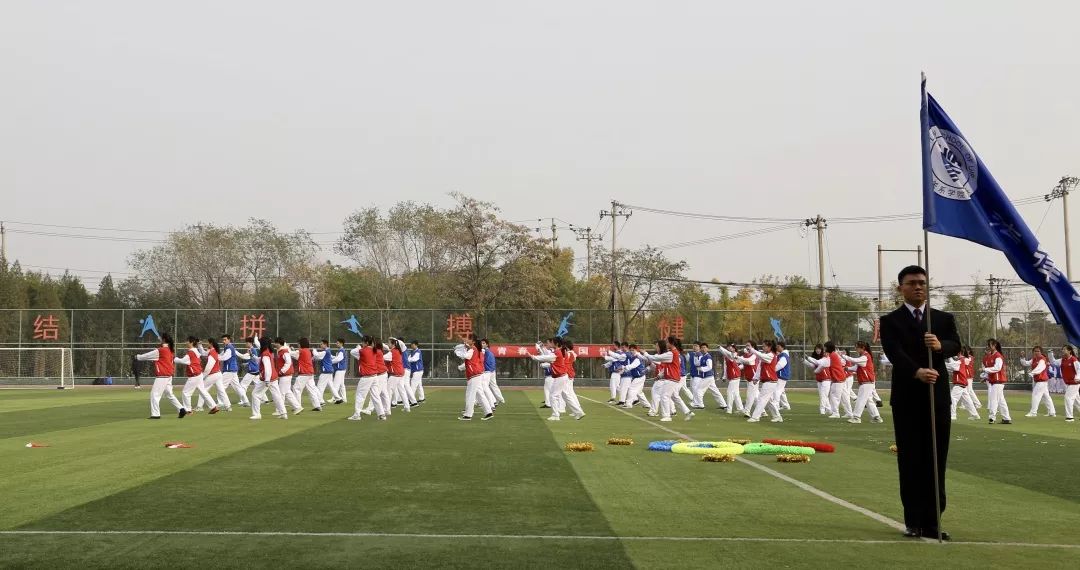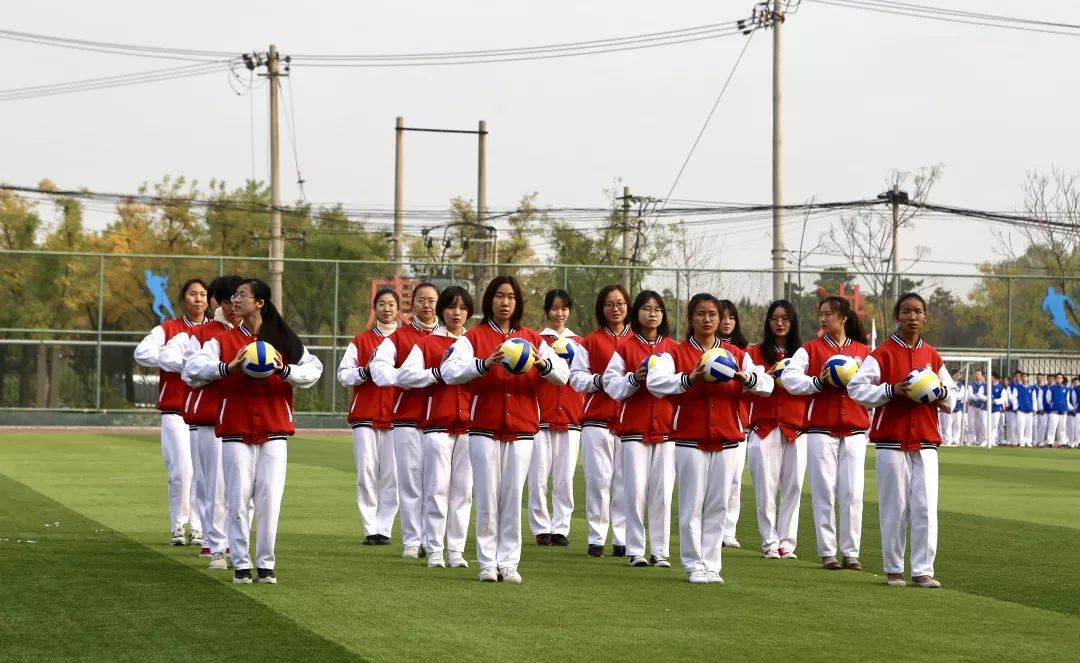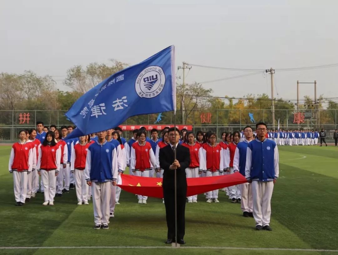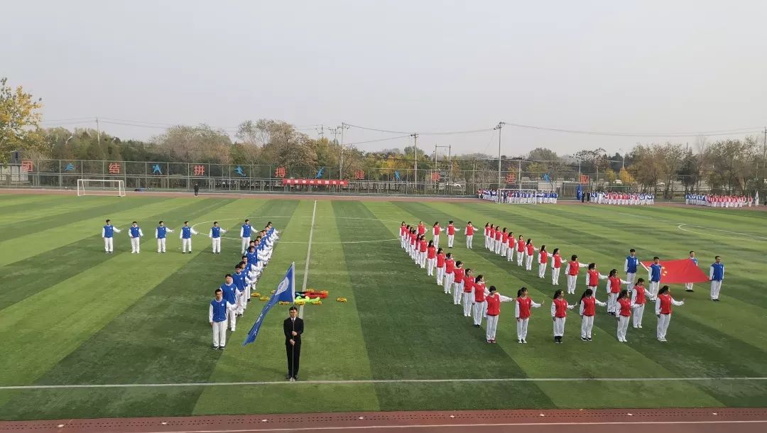 院系方阵在操场上有序排列进行第一项升国旗、奏国歌活动。随后外语公司作为首支队伍上场,正式拉开了比赛的大幕。