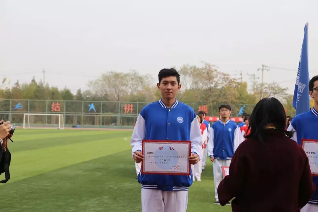 在本次比赛中,法律系的新生方阵按照抽签顺序压轴登场。随着指挥艾尼卡尔洪亮的口令,同学们动作整齐划一、口号雄浑有力。齐步正步交替之间,迈出的是法律系的气宇轩昂;向左向右转切之间,体现的是法律人的英姿飒爽。运动场与看台上法律系交相呼应的口号声雄浑响亮,法律系的激情回荡在整个操场。