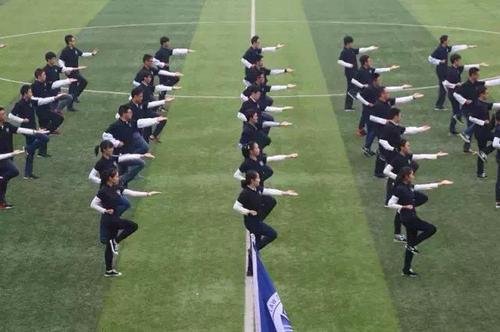 入场完毕后,法律系队伍首先进行了军体拳的展示。整齐的一招一式,是他们二十多日团结付出的结晶,有力的一举一动,凝聚着近一个月来编排训练的点滴。
