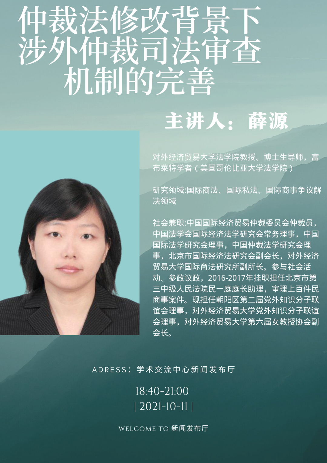【讲座预告】仲裁法修改背景下涉外仲裁司法审查机制的完善