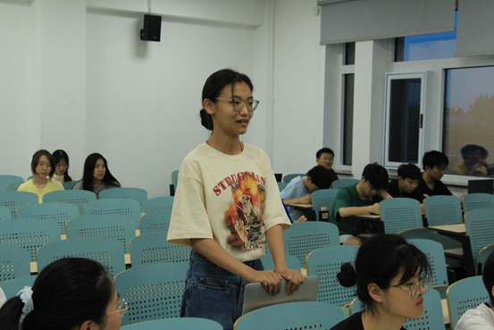 紧接着,保研至北京外国语大学的田禾茁师姐通过PPT的形式向我们分享了她的保研经验。田师姐主要从获取保研资料、信息保研材料的准备、夏令营和预推免、双考复习安排和对有保研意向同学的建议五个方面进行了分享,并在最后回答了“如何选择保研院校”等问题,让我们受益匪浅。
