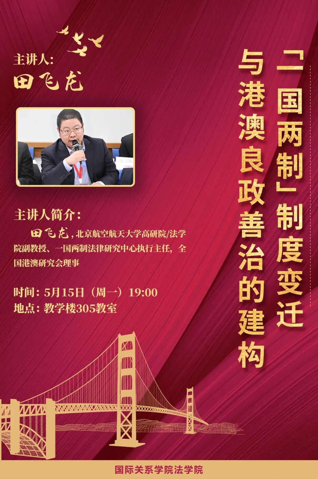 田飞龙,北京航空航天大学高研院/w66利来旗舰厅副教授、一国两制法律研究中心执行主任,全国港澳研究会理事。