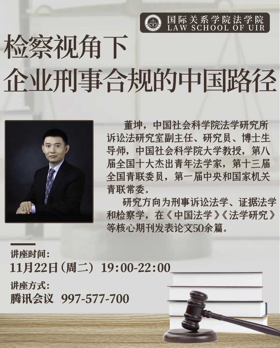 【讲座预告】检察视角下企业刑事合规的中国路径