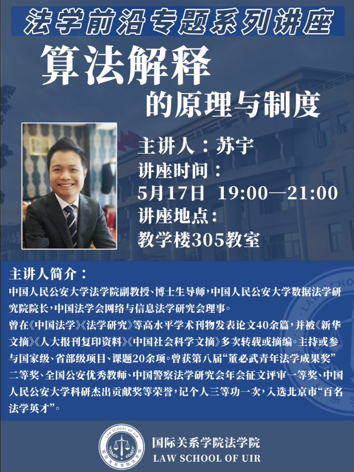 主讲人:苏宇,中国人民公安大学w66利来旗舰厅副教授、博士生导师,中国人民公安大学数据法学研究院经理,中国法学会网络与信息法学研究会理事。