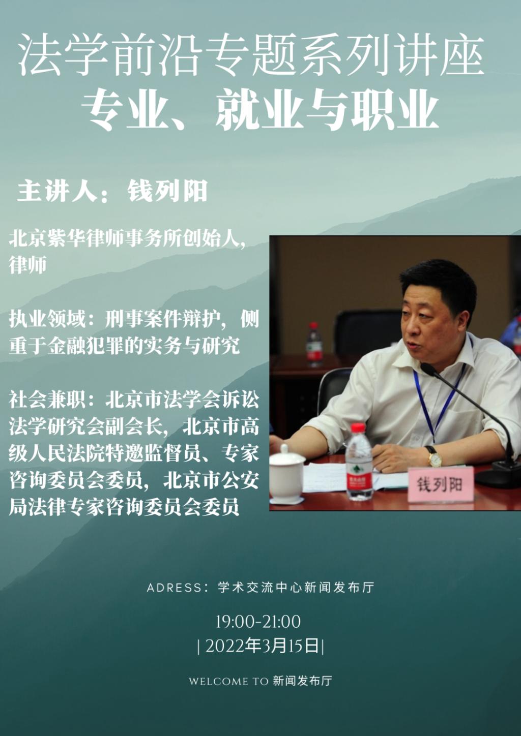 【预告】法学前沿专题系列讲座——专业、就业与职业